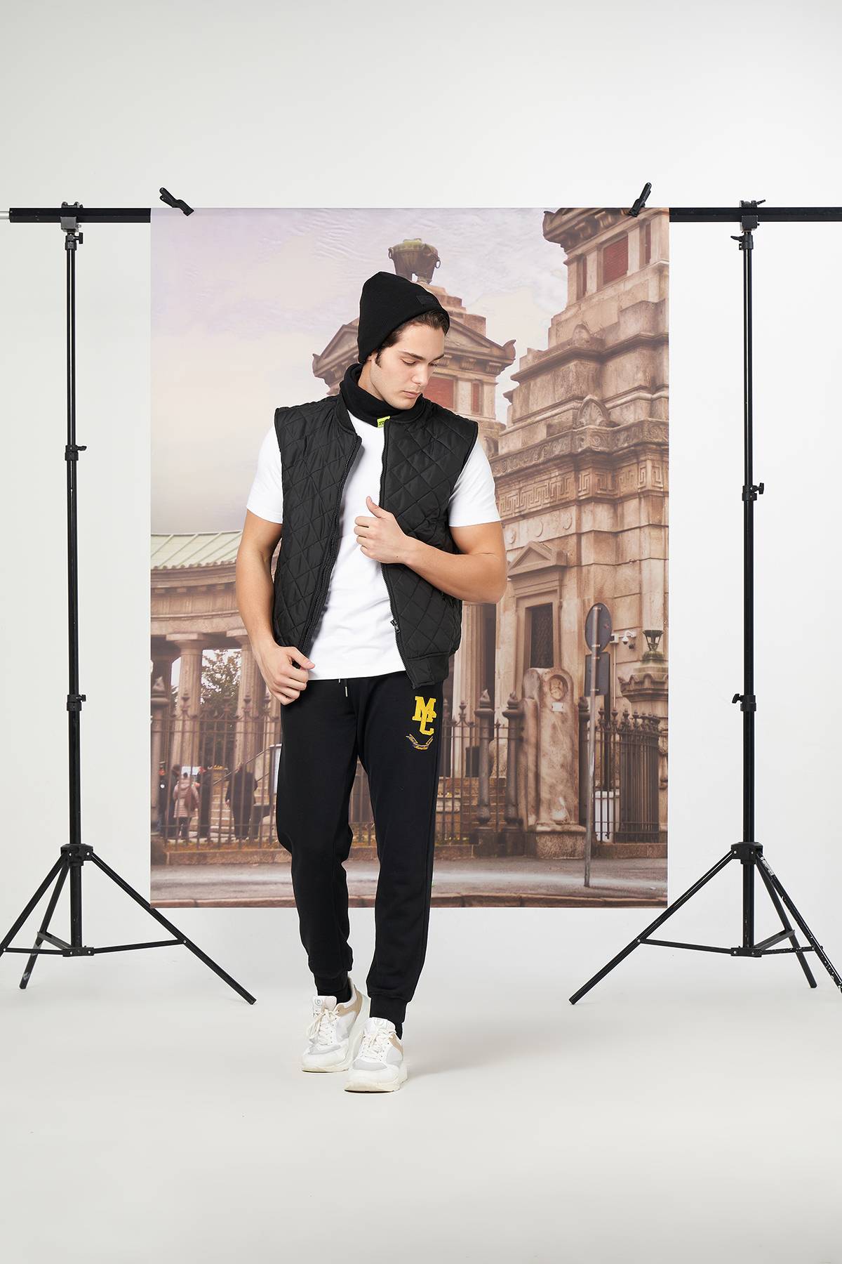 80% Cotton & 20% Polyester. Stretchable And Comfortable Solid Jogger Pants Featuring Elasticated Waistband With Drawstring. Front Typography And Slash Pockets. Rear Patch Pocket. Cuff Hem